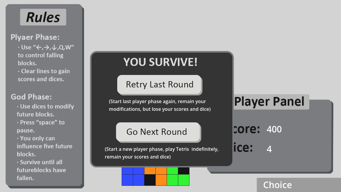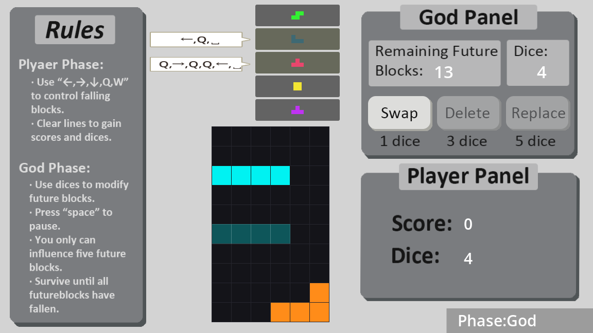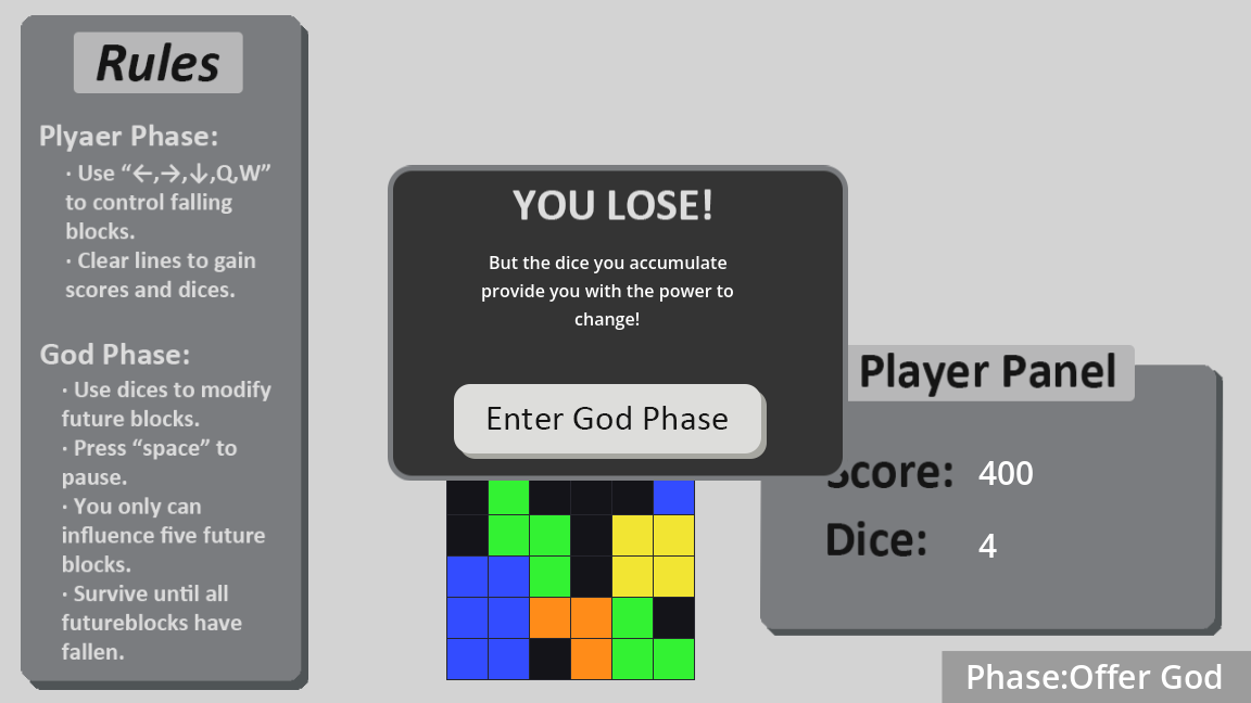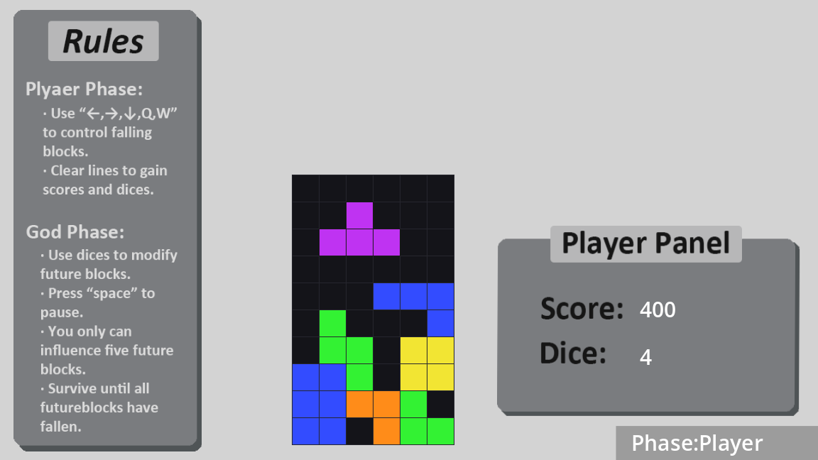 In Player Phase: Control falling blocks and increase dice.