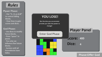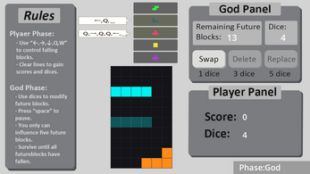 In a classic game destined to fail,players alternate between Playerand God, intervening in past matches to keep Tetris going indefinitely.